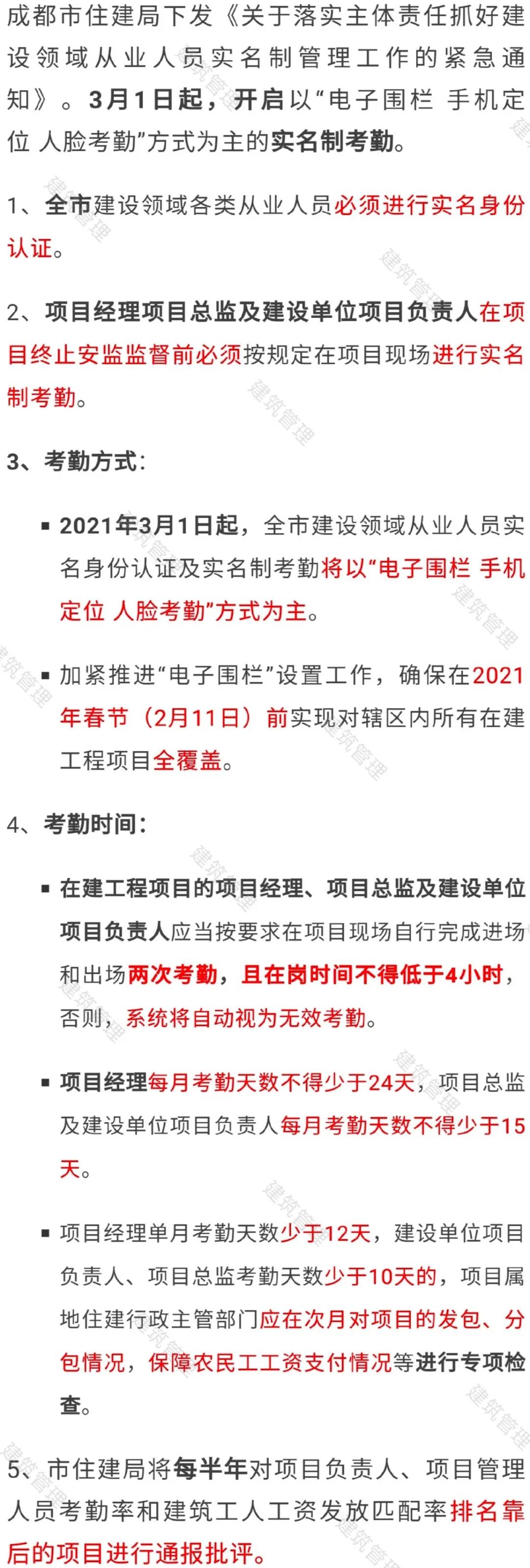 (三)建設(shè)單位負(fù)責(zé)組織對(duì)建設(shè)、施工、監(jiān)理的項(xiàng)目關(guān)鍵崗位人員實(shí)施考勤管理,總承包單位負(fù)責(zé)對(duì)分包單位人員實(shí)施考勤管理。施工總承包單位將專(zhuān)業(yè)工程分包的,分包單位現(xiàn)場(chǎng)負(fù)責(zé)人員和安全管理人員一并納入考勤。